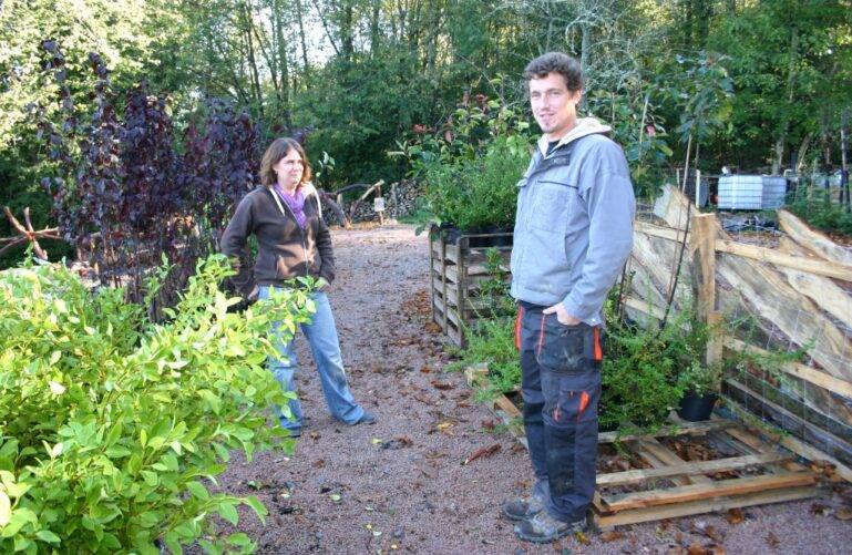 Description: pépinière permacole à base de haies fruitières pour les pieds mères et nourriture. Lieu éducatif et lieu de vie en système adolescent en permaculture. Cohabitation de deux familles. Décroissance des machines (seulement deux machines 2-temps). Entreprise agricole sans tracteur, toile tissée 130 g/m2 et paillage par propre foin